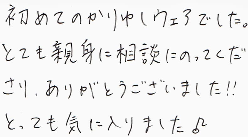 初めてのかりゆしウェアでした。とても親切に相談にのってくださり、ありがとうございました!!とっても気に入りました♪