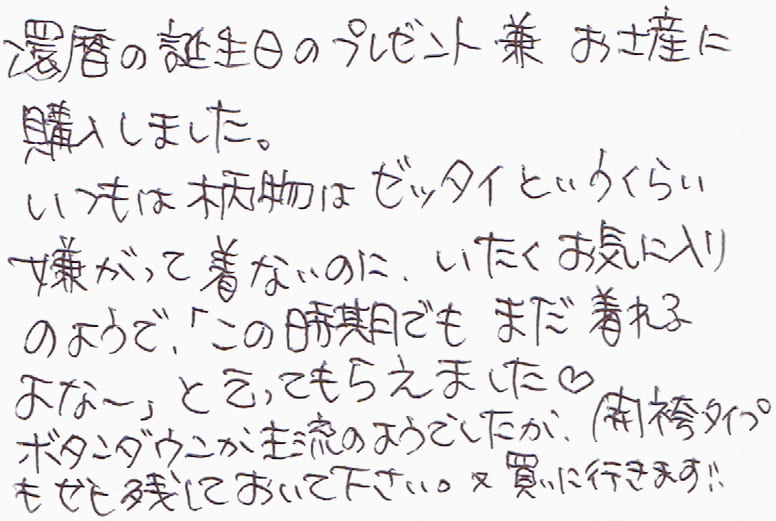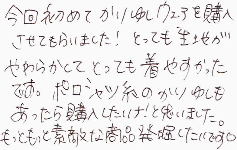 - とっても生地がやわらかくてとっても着やすかったです。