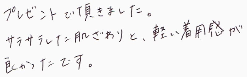 プレゼントで頂きました。サラサラした肌ざわりと、軽い着用感が良かったです。