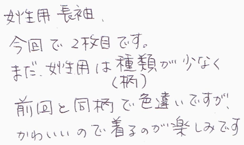 女性用長袖、今回で2枚目です。
