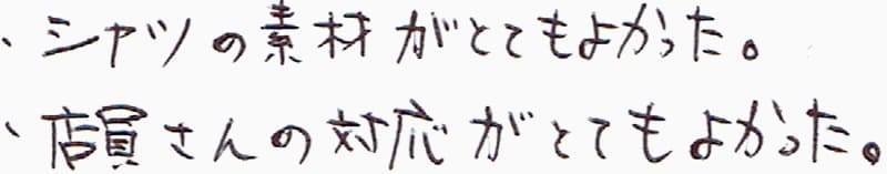 ・シャツの素材がとてもよかった。・店員さんの対応がとてもよかった。