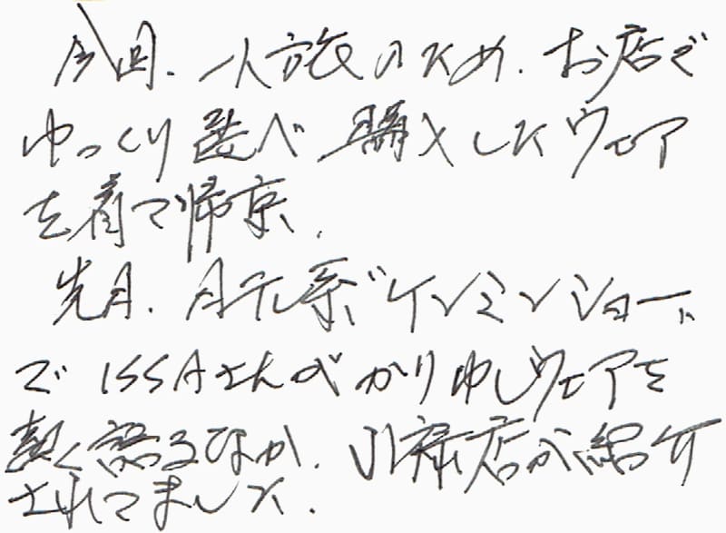 今回、一人旅のため、お店でゆっくり選べ購入したウェアを着て帰京。先月、日テレ系〝ケンミンショー〟でISSAさんがかりゆしウェアを熱く語るなか、小禄店が紹介されてました。