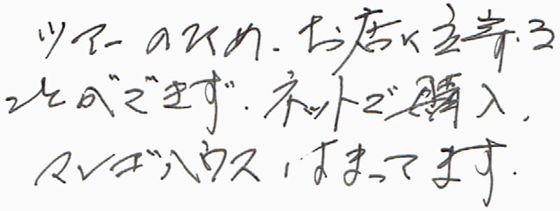 ツアーのため、お店に立寄ることができず、ネットで購入。マンゴハウスにはまってます。