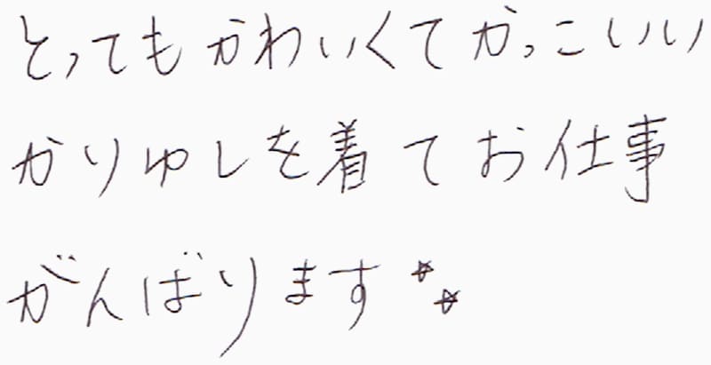 - とってもかわいくてかっこいいかりゆしを着てお仕事がんばります。