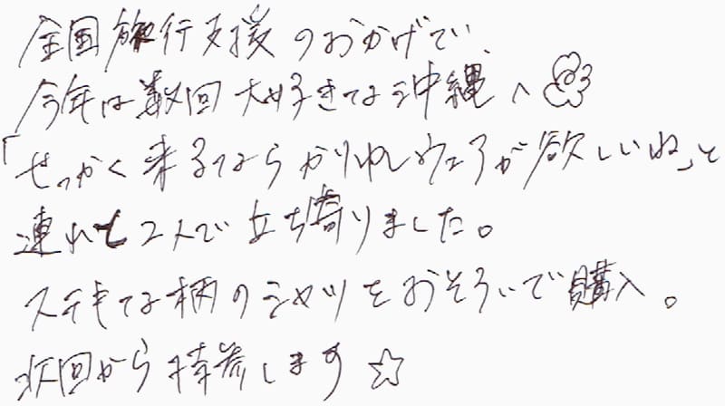 食べ物だけではなく沖縄土産として特別感があってとてもよかったです。