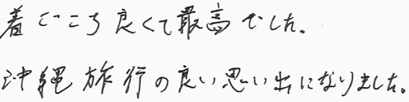 着ごこち良くて最高でした。沖縄旅行の良い思い出になりました。