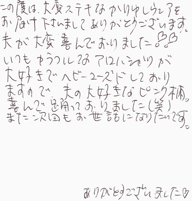 - 夫が大変喜んでおりました!!