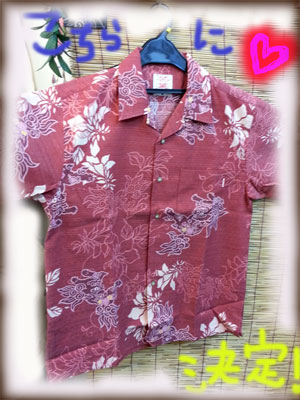 でも、沖縄らしい柄で赤い色のかりゆしとかないかな?
