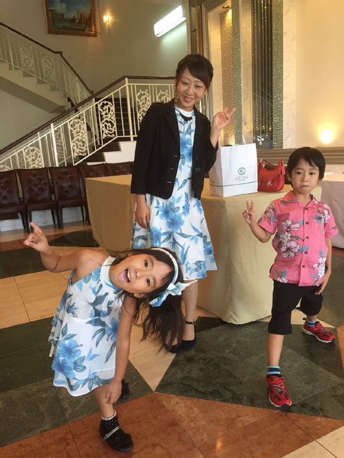 はいさーい! 27日にお友達の結婚式に親子で参加してきましたー☆ …となると、絶対!おそろコーデでしょっ♪ てことで5歳の娘とお揃いでワンピース着ちゃいました(^^)v   じゃーーーーん!! 結婚式②『ホルターネックワンピース フローラル月桃』※完売 ホルターネックタイプのワンピースなんですが、、、   二の腕が気になる私は、ジャケットを上から羽織りました♪ 淡い色のショールやカーディガン等も良いですが、 黒や紺系のダークな色のジャケットを羽織ると、 締まって見えるのでオススメですよー(^^)/     付属で付いてるリボンちゃん♪ 娘ちゃんはカチューシャ風に可愛らしく使いました(*^^*) 結婚式④結婚式⑥ そして私は、上品な感じにしたくて、ヘアセットをする際に、 ゴムの代わりに使ってみました♪(見ずらくてスミマセン(^_^;)) 結婚式5 首元にリボンとして巻いても良し! ヘアアレンジに使っても良し! ブレスレット風に手首に巻いても良し! いろんなアレンジで楽しめますよー♪   ワンピースの生地も、軽い素材で着心地も良かったーー(^^)/ 色々な方から親子でお揃いかわいいねー♪ と、お褒めの言葉もいただきました(*^_^*)   うちのじゃじゃ馬娘も、少しは上品に見えたかしら??笑 結婚式① ちなみに、息子が着てるピンクのシャツも、 マンゴハウスの商品ジャガードハイビー ジャガードハイビ 生地にランの花の柄が織られてれいて、 凄く高級感のあるデザインで、結婚式にピッタリ♪ 結婚式③かりゆしワンピースでお揃いコーデ♪ ぜひぜひオススメです!