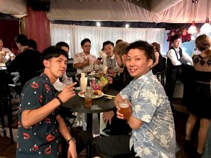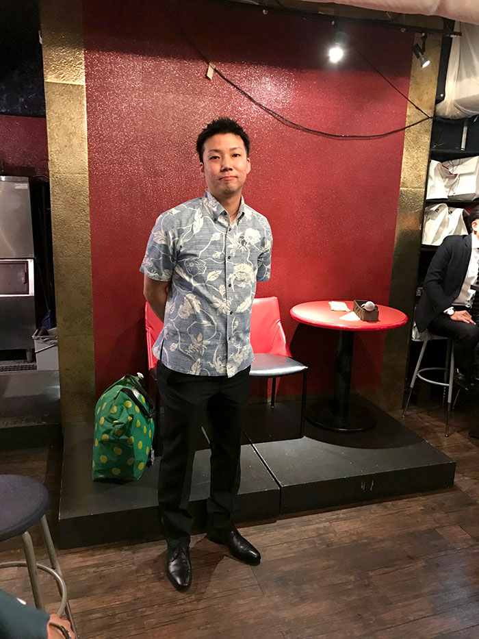 隣で着ているお洒落な友人はモンパチの清作さんがデザインしたアロハを着ちゃってます!